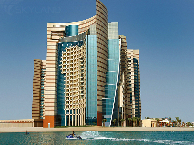 В 23-этажном здании отеля расположены 443 просторных номера и сьюта, большинство из которых с видом на Персидский залив: