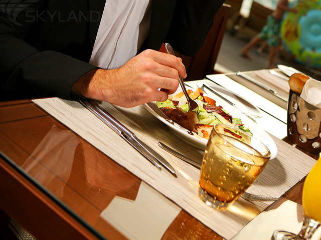 The Beach Restaurant - расположенный рядом с бассейном и пляжем, работающий ежедневно с 12:00 до 15:00 (обед) и с 19:00 до 23:30 (ужин) ресторан a la cartе с открытой террасой, где можно насладиться прекрасными деликатесами ближневосточной и средиземноморской кухни, а также блюдами из рыбы и морепродуктов.