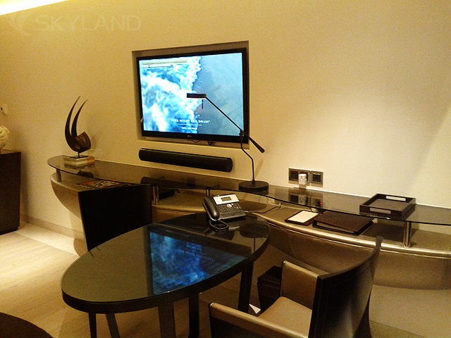Presidential Suites (275 кв.м) – включает две спальни (с кроватью king-size и с двумя кроватями twin), гостиную, рабочую зону, кухню с отдельным входом для дворецкого, ванную комнату с ливневым душем и ванной, просторную террасу с видом на Персидский залив.