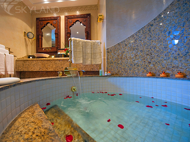 Каждая из 19 необычайно просторных вилл с большой террасой и бассейном являет собой высочайший образец арабского стиля, роскоши и гостеприимства в сочетании с современнейшими удобствами и оборудованием (высокоскоростной Интернет, телефон, факс, спутниковое ТВ, DVD плеер). Виллы обставлены мебелью ручной работы из ценных пород дерева и декорированы произведениями арабского искусства и персидскими коврами.