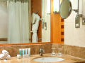 ванная комната с ванной, душем и биде, балкон. К услугам гостей: халаты, ванные принадлежности, мини-бар, сейф, утюг и гладильная доска, круглосуточное обслуживание номеров. Предлагается разнообразие современной техники для максимального комфорта: фен, индивидуальный кондиционер, спутниковое и кабельное ТВ, DVD-плеер, телефон (2 линии), голосовая почта, модем, высокоскоростной интернет (платно).