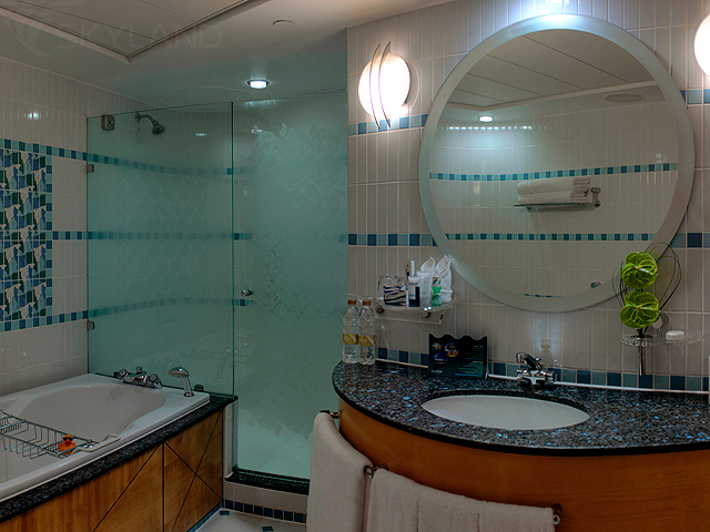 21 Two Bedroom Ocean Suites (162 кв.м) – трехкомнатные номера с отдельной гостиной, 2 спальнями с ванными комнатами (в главной спальне – телевизор и ванная комната с ванной и душевой кабиной), балконом с видом на Персидский залив, или терраса с видом на Wild Wadi или на пляж и The World. Есть номера с небольшой кухней.