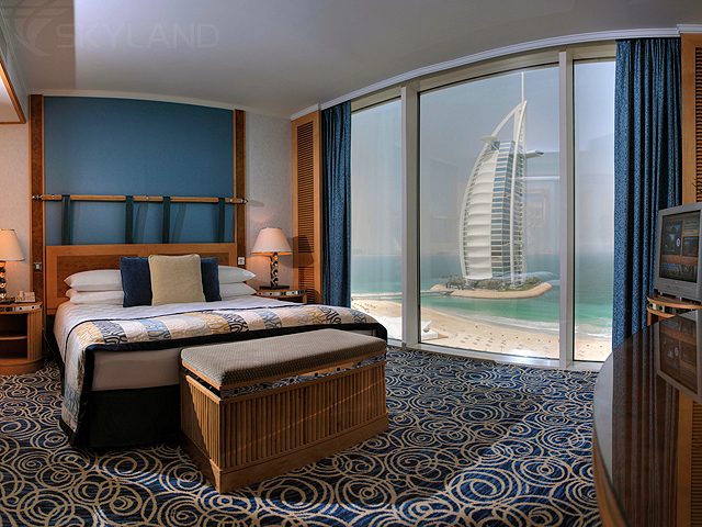 9 One Bedroom Ocean Suites (128 кв.м) – двухкомнатные номера с отдельной гостиной, спальней, ванной комнатой с ванной и душевой кабиной, балконом с видом на Персидский залив, или терраса с видом на Wild Wadi или на пляж и The World.