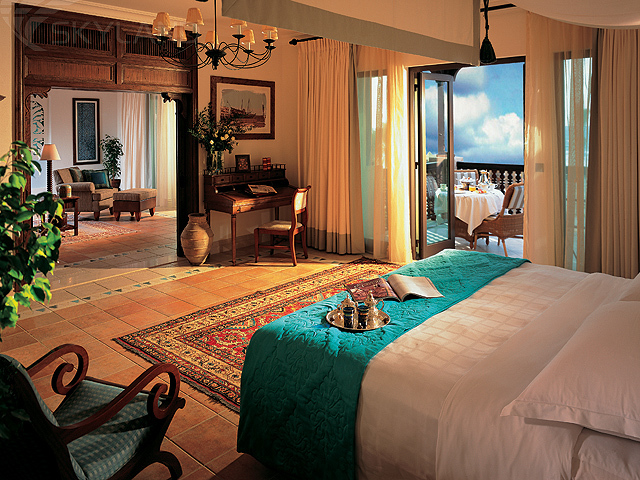 Декор отеля отображает восточную роскошь. С балконов номеров гостям открывается прекрасный вид на море и сады.