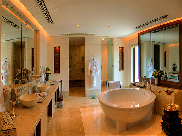 206 Arabian Deluxe Rooms (60 и 65 кв. м.) – номера на первом и втором этажах вилл. В номере: большая спальня с гостиной зоной, ванная комната, декорированная мрамором, широкая терраса с видом на каналы. Гости номеров пользуются услугами дворецкого. Максимальное размещение в номерах: 2 взрослых и 2 детей (до 12 лет) или 3 взрослых.