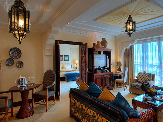 197 Deluxe with Balcony Rooms (50 кв.м.) - кровать king-size или twin, гостиная зона (диван, кресло, журнальный столик и телевизор), гардеробная. Оформлен в традиционном арабском стиле. Максимальная вместимость номера: 2 взрослых и 2 ребенка (до 12 лет) или 3 взрослых.