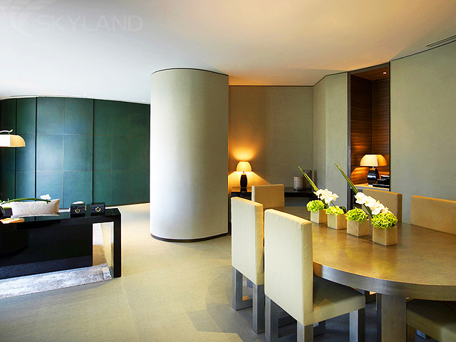 Armani Ambassador Suite (150 кв.м) - прихожая, гостиная, барная стойка, спальня с кроватью king-size, ванная комната с ванной и душевой кабиной, гостевой туалет. Дополнительно: кофемашина. Расположены на 5 и 6 этажах.