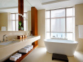 отделанная мрамором ванная комната с глубокой ванной, душевой кабиной, ливневым душем, и биде;