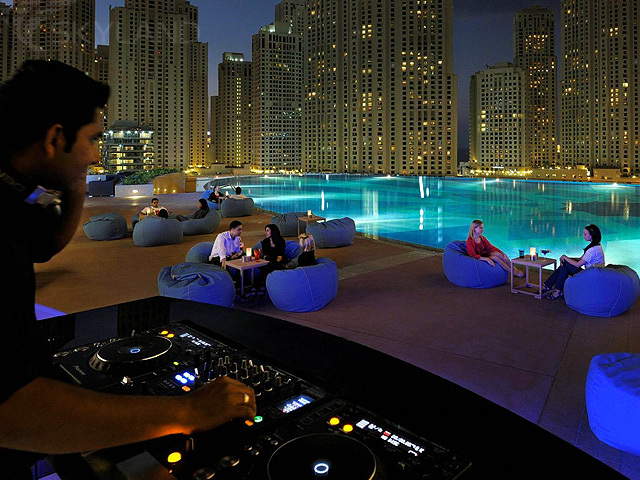 Shades — расположившийся на 4 этаже у «бескрайнего» бассейна ресторан с открытой террасой, где в непринужденной атмосфере chill out можно отведать закуски и блюда из меню a la carte с разных концов континента, от Средиземноморья до Дальнего Востока, любуясь звездами и видами роскошного Дубаи, наслаждаясь фирменными коктейлями и приятной музыкой. Ресторан открыт с 18:00 до часа ночи. А по выходным здесь демонстрируют свое искусство местные ди-джеи.