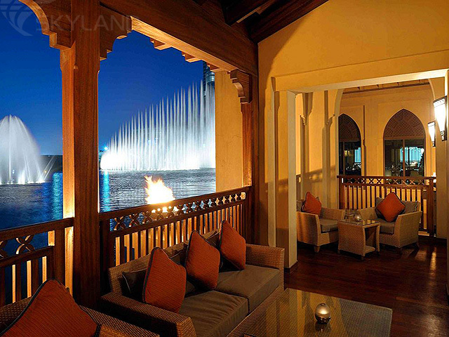 3 Royal Suites (106 кв.м) – декорированные в духе «Сказок 1000 и 1 ночи» двухкомнатные номера с видом панорамным видом на роскошный Фонтан Дубай. В номере: просторный балкон, отдельная гостиная, спальня с кроватью king-size. Дополнительно: гостевая ванная комната. Гостям этих номеров предоставляется бесплатный трансфер «аэропорт-отель-аэропорт».