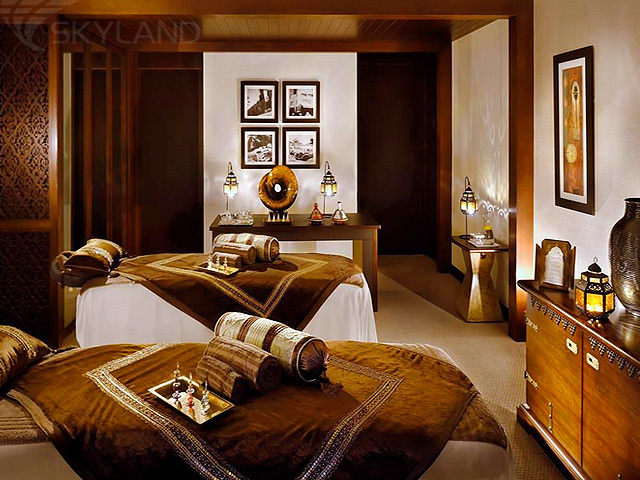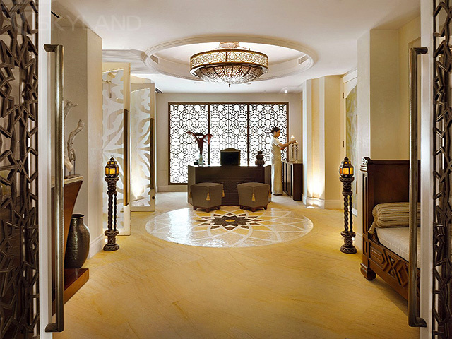 The Spa – расположенный в The Palace Downtown Dubai роскошный декорированный в арабском стиле спа-центр в комплексе которого: 6 процедурных кабинетов, где предлагается широкий спектр услуг по уходу за лицом и телом, 2 хаммама, 2 джакузи, 2 парные, 4 душа Monsoon, зоны для релаксации и спа-бутик, открытый бассейн и фитнес-центр. В спа-программах и процедурах специалистами центра применяется эксклюзивная косметическая продукция для ухода за кожей лица и тела, скрабы, ванны и проч.