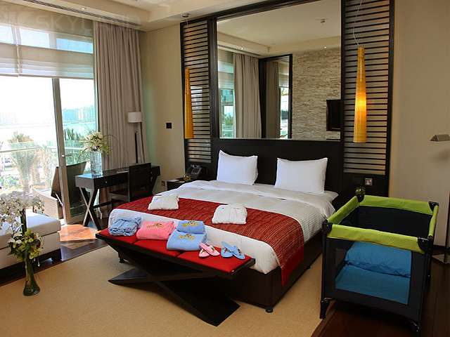 84 Deluxe Rooms (53 кв.м) - однокомнатные номера, состоящие из спальни с кроватью king-size, выделенной ширмой гостиной зоны, ванной комнаты, балкона с великолепным видом на Пальмовые острова и Персидский залив.