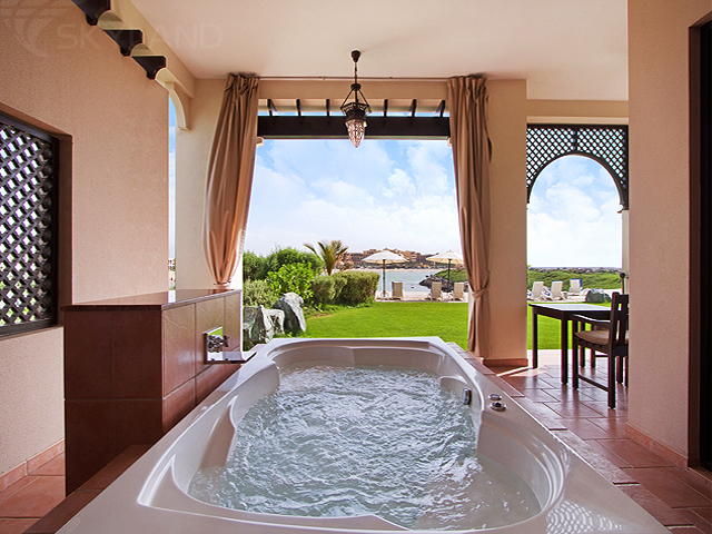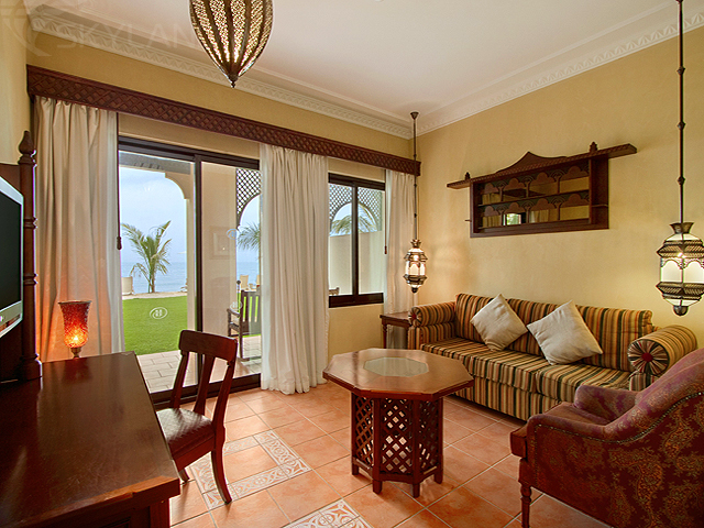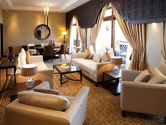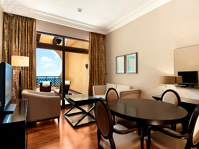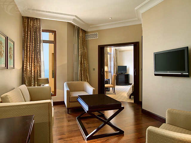 Junior Suites Beach Villa (53 кв.м) – расположенные в 2-этажных виллах на пляже номера со спальней с кроватью king-size, отдельной гостиной, балконом или террасой с видом на бассейн, или Персидский залив. В номерах дополнительно: выбор журналов и DVD-проигрыватель. Максимальное размещение – 2 взрослых и 1 ребенок (дополнительная кровать в гостиной).