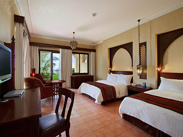 Double Queen Guest Rooms (40 кв.м) – расположенные в главном здании однокомнатные номера с 2 кроватями queen, балконом с видом на Рас Эль Хайму, или террасой с видом на сад и прямым выходом к пляжу (запрашивать вакантность). Максимальное размещение – 2 взрослых и 2 детей.