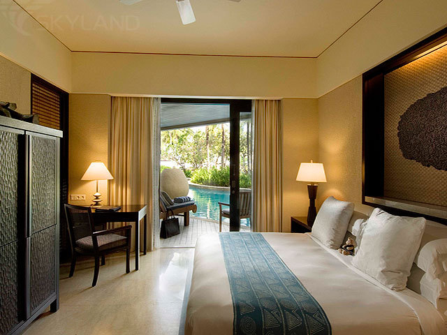Deluxe Lagoon King/Twin Rooms (45* кв.м) – расположенные на 1 этаже однокомнатные номера с видом на тропические сады и лужайки отеля, состоящие из спальни с кроватью king-size, или 2 кроватями twin, ванной комнаты и террасы с прямым входом в бассейн-лагуну.