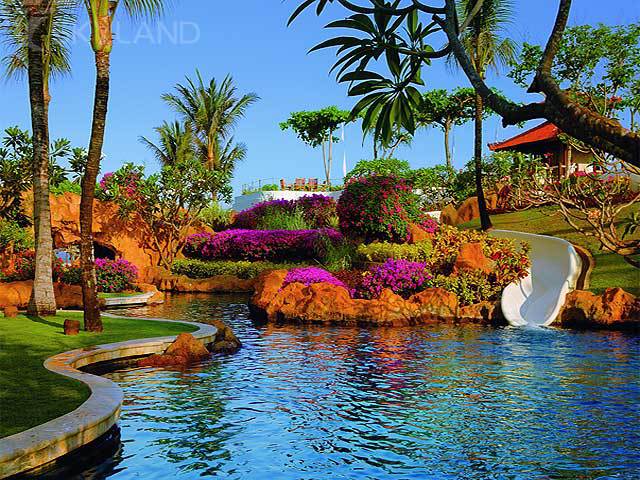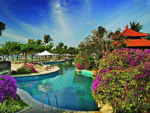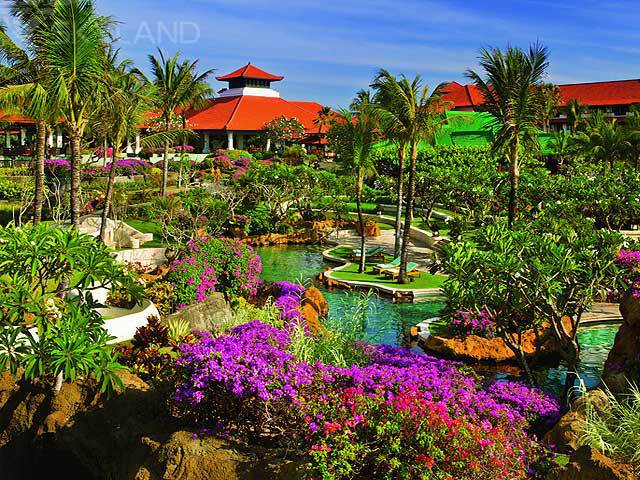 Grand Hyatt Bali - эксклюзивный, первоклассный курорт, расположенный на пляже Нуса-Дуа, недалеко от столицы острова - Денпасара, в 15 минутах езды от международного аэропорта Ngurah Rai, рядом с древними храмами и достопримечательностями Бали. Жемчужина курортной зоны Нуса-Дуа, расположившийся на площади в 16 гектар настоящий дворец на воде, где к услугам гостей 648 роскошных номеров и сьютов, разместившихся в традиционных балийских павильонах и три эксклюзивные виллы на пляже, пять великолепных, утопающих в зелени ухоженных тропических садов бассейнов-лагун, прудов, поросших лилиями, с водопадами, водными горками и «ленивой рекой». Отель располагает прекрасным спа-центром и салоном красоты, детским клубом Camp Nusa, оздоровительным центром (тренажерный зал, теннисные корты, площадки для игры в бадминтон и сквош, джакузи, плавательный бассейн), а также первоклассным конференц-центром с 25 залами для совещаний и деловых встреч, 2 залами для заседаний и банкетным залом Grand вместимостью до 1420 гостей). В ресторанах отеля можно отведать блюда международной, японской, традиционной балийской и итальянской кухни, бары порадуют разнообразием изысканных напитков и коктейлей, а эксклюзивный Grand Club обеспечивает гостям клубных номеров (в East Village) высочайший уровень комфорта и персонального сервиса.