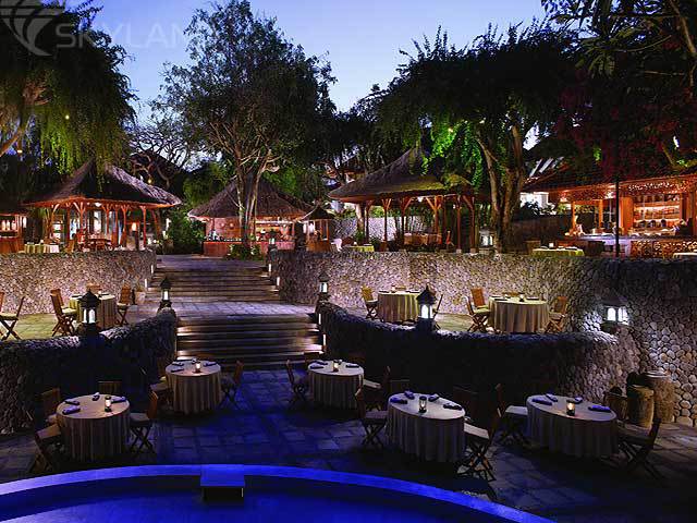 The Watercourt Restaurant – расположенный в окружении, напоминающем атмосферу легендарных дворцов на воде, окруженный благоуханием тропических цветов, живописными бассейнами и фонтанами ресторан традиционной балийской кухни. Ресторан открыт для завтраков с 6:30 до 11:00, а также частных обедов и ужинов.