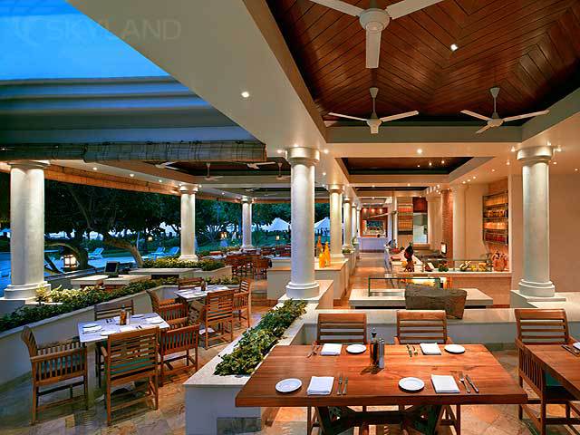Garden Cafe – расположенный в окружении садов и лагун в самом сердце отеля, рядом с главным лобби, ресторан с обеденным залом и открытой террасой, предлагающий популярные блюда азиатской и европейской кухни (завтрак «шведский стол» с 6:30 до 10:30 и меню а la carte с 6:30 до 11:00; обед с 11:00 до 18:00; ужин с 18:00 до 1:00). .