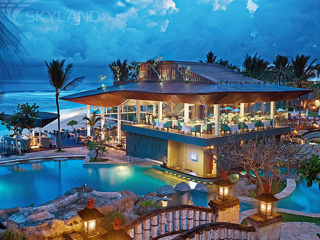 Великолепный комплекс, созданного в сдержанном японском стиле отеля, величаво возвышается на 40-метровом утесе, стоящем на самом берегу Индийского океана.
