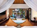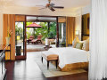11 St. Regis Lagoon Villas 1 Bedroom (359-380 кв.м) - расположенные у бассейна-лагуны в тени тропического сада виллы с высокими потолками и полами из красного дерева, состоящие из просторной гостиной (131 кв.м) со столовой зоной на 6 человек, спальни, ванной комнаты, комнаты с отдельным входом для прислуги, открытой террасой, павильоном для отдыха, обеденной зоной на 4 человека и частным бассейном (20 кв.м) в небольшом тропическом саду. Виллы имеют прямой выход к бассейну-лагуне площадью 3668 кв.м.