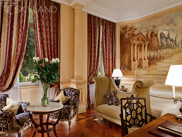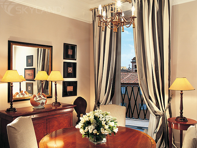 Penthouse Suite (130 кв.м) – номер на крыше отеля с отдельным лифтом. Из окон номера открывается великолепная панорама Рима. В номере: джакузи, 2 спальни, гостиная, кабинет и 2 ванные комнаты.