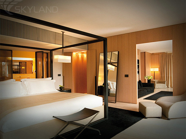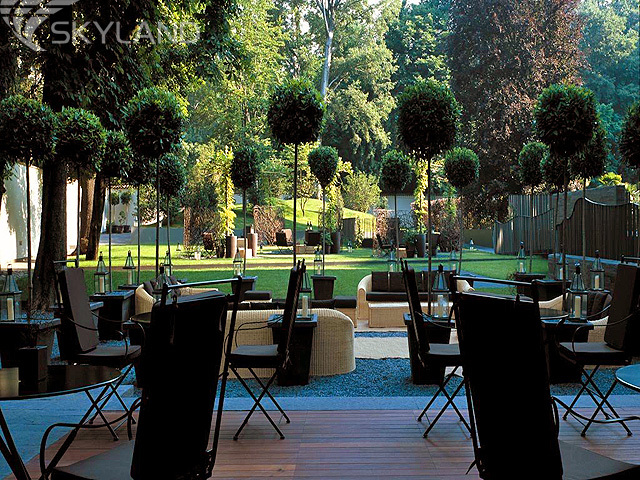 Здесь царит тихая, умиротворяющая атмосфера, а вид из окон обеспечит вам хорошее настроение. Помещения отеля оформлены известным итальянским архитектором Антонио Читтери: фасад здания отделан специально переливающейся шпаклевкой цвета слоновой кости, при оформлении номеров были применены самые современные технологии и материалы, а также использованы дуб, бронза и мрамор.