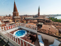Один из самых роскошных отелей Венеции, Bauers Il Palazzo, расположен на берегу Большого канала, в двух шагах от знаменитой площади Сан-Марко, в 30 минутах езды на водном такси от международного аэропорта Марко Поло. Старинное здание XVIII века было полностью обновлено, и теперь к услугам гостей 44 номера и 38 люксов, украшенных изысканными тканями, позолоченными зеркалами, резными штукатурными потолками с люстрами муранского стекла. На последних этажах находятся комнаты и люксы, оформленные в необычном стиле. Здесь европейская классика — мягкие диваны и резные рамы зеркал — гармонично сочетается с элементами современного дизайна. Из отеля открывается захватывающий вид на каналы Венеции, что, несомненно настраивает гостей на романтическое настроение, которое по-настоящему можно испытать только здесь, в самом сказочном городе на свете.