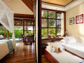 1 Two-bedroom Royal Beach Villa (197 кв.м) – роскошная вилла, расположенная в нескольких шагах от пляжа в окружении тропического сада, состоит из 2 спален, выходящих в общую гостиную, 2 гардеробных, 2 ванных комнат (в главной – джакузи), внутреннего дворика (256 кв. м) с садом, индивидуальным бассейном, с душем под открытым небом, зоной отдыха с шезлонгами и кроватью-качалкой undholi.