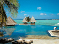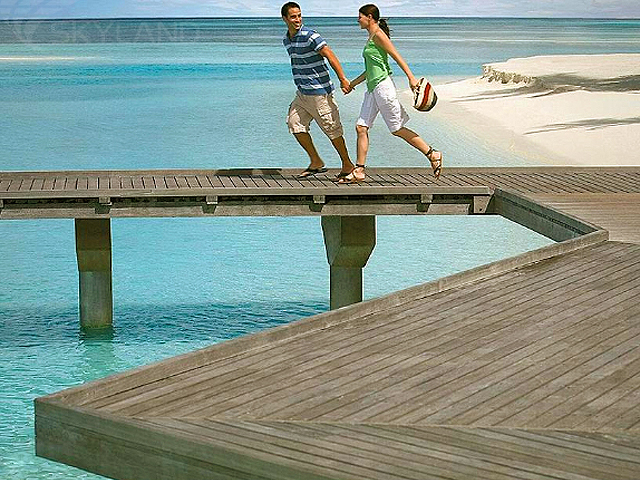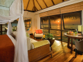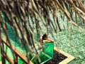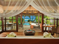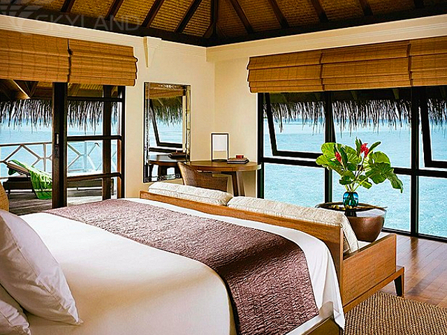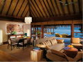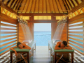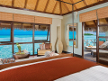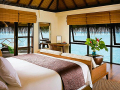 32 Water Bungalows (61 кв.м) - бунгало на воде с видом на океан и лагуну c холлом, спальней с кроватью king-size или 2 twin, и гостиной зоной , гардеробной, ванной комнатой с видом на лагуну, открытой террасой (39 кв. м) с душем под открытым небом и солярием с прямым спуском в воду.