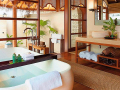 2 Two-bedroom Water Bungalows (173 кв.м) – роскошные бунгало расположенные на сваях в водах лагуны, состоят из 2 спален (в каждой – зона отдыха с телевизором, в главной - биде) с гардеробными, 2 ванных комнат с окнами на океан, гостиной с обеденной зоной, гостевой туалетной комнаты, открытой террасы (99 кв. м) с солярием и зоной для отдыха, а также платформой для плавания с душем и прямым спуском в воду.