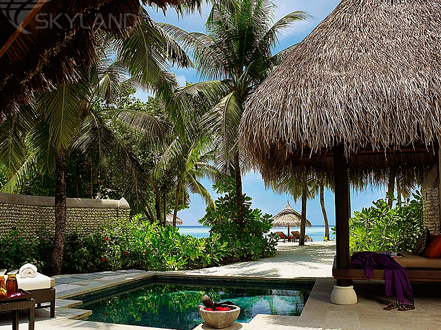 Этот отель принадлежит всемирно-известной цепочке Four Seasons. Чарующие своей элегантностью просторные виллы с открытыми террасами, уютными внутренними двориками, садиками и бассейнами, построены и декорированы в традиционном островном стиле с использованием местных природных материалов и изделий местных мастеров. Роскошный остров окруженный изумрудом лагун и ожерельем коралловых рифов, с их фантастическим многоцветным подводным миром, идеально гармонирует с роскошью бытия.