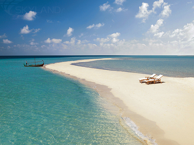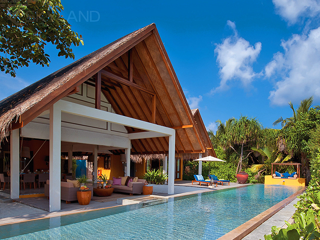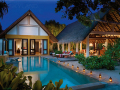 1 Two-bedroom Royal Beach Villa (310 кв.м) - береговая вилла на западной оконечности острова рядом с пляжем, состоящая из 2 спален, 3 ванных комнат, гостиной со столовой зоной, внутреннего дворика (890 кв. м) с садом, 2 индивидуальными бассейнами: основным (30 м) и дополнительным (10 м); 2 соляриями, обеденной зоной, павильоном для отдыха и 2 душами под открытым небом.
