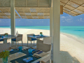 10 Water Villas with Plunge Pool (74 кв.м) - водные виллы с панорамным видом на океан расположены на северо-западе острова рядом с пляжем, вдоль понтонного мостика и состоят из спальни со стеклянными дверями и стенами, ванной комнаты, гостиной, и открытой террасы (53 кв. м) с собственным бассейном, солярием, душем под открытым небом и прямым спуском в лагуну.