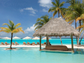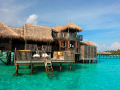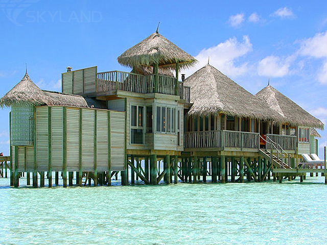 45 экзотических бунгало в стиле хижины Робинзона Крузо возвышаются на сваях над бирюзовыми водами живописной лагуны. Но эти "хижины", в строительстве и оформлении которых использовались только экологически чистые материалы, при близком рассмотрении оказываются роскошными, прекрасно оборудованными виллами, о которых сам Робинзон не мог даже мечтать.