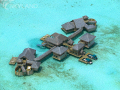 Большинство вилл соединены с островом деревянными мостками, далеко простирающимися в глубь лагуны, кроме 7 Crusoe Residences и самой роскошной виллы - The Private Reserve, где связь с островом осуществляется только по воде на лодке dhoni, на которой в любое время дня и ночи гостей доставят в ресторан, школу подводного плавания или в гости на соседнюю виллу.