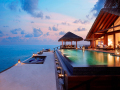 22 Lagoon Suite with Plunge Pool (195 кв.м.) - стоящая на сваях на воде, просторная вилла. С индивидуальной террасы виллы, оснащенной лежаками, шезлонгами и столовой зоной, спускается лестница в воду. На вилле – гостиная, просторная спальня, ванная комната с ванной, душем, туалетным столиком и панорамным окном, обращенным на Индийский океан, душ под открытым небом и большой индивидуальный бассейн.