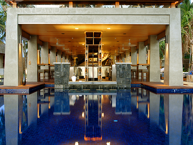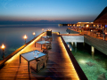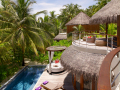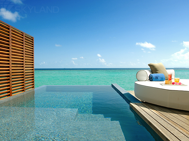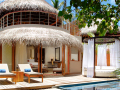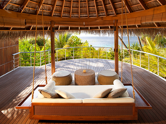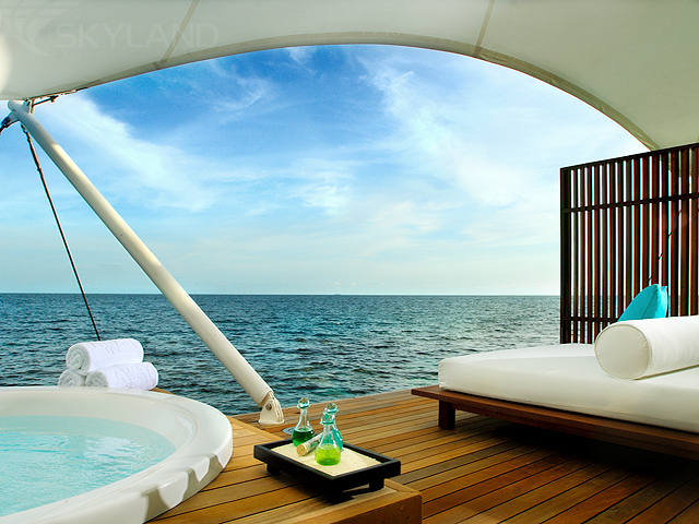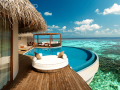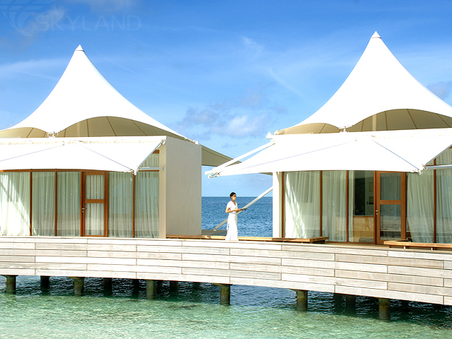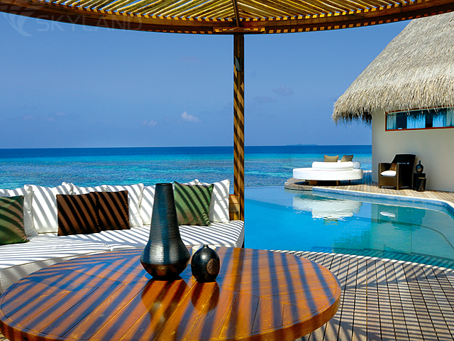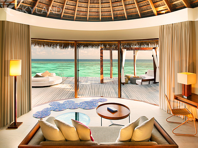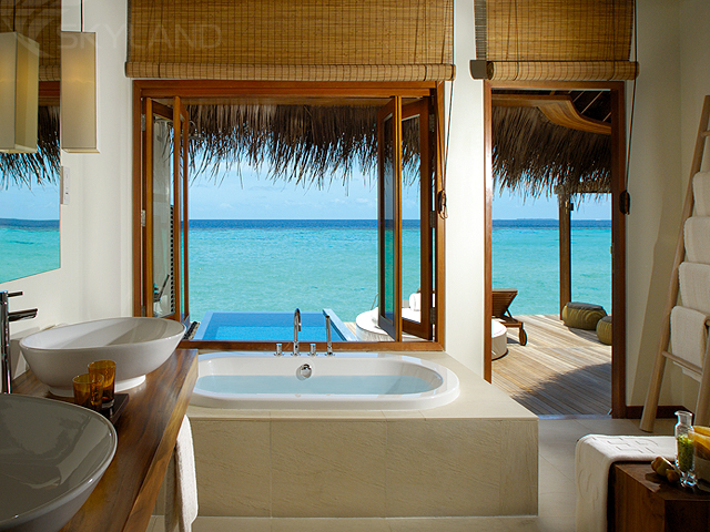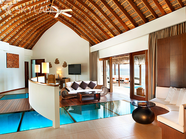 3 Seascape Escape (323 кв.м) — водные виллы на сваях с огромной террасой, открытой и крытой зонами столовой и обеденным столом на 6 человек, главной спальней с гостиной и телевизионной плазменной панелью 50”, дополнительной спальней с зоной отдыха и ЖК экраном 32”, 2 ванными комнатами, кухней, гостевой туалетной комнатой, Hi-Fi системой Bose.