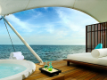 1 Ocean Heaven (491 кв.м) — эксклюзивная водная вилла открытого плана с главной спальней с гостиной и телевизионной плазменной панелью 50”, дополнительной спальней с зоной отдыха и ЖК экраном 32”, 2 ванными комнатами (в главной – большая круглая ванна), открытой и крытой зонами гостиной, обеденным столом на 6 человек, кухней, 2 спальнями, гостевой туалетной комнатой, душем со стеклянным полом, окружающим виллу со всех сторон солярием, «бескрайним» бассейном с зоной джакузи и Hi-Fi системой Bose.