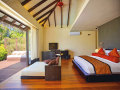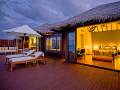 8 Deluxe Beach Villas (175 кв.м) - расположенные на пляже виллы, состоящие из фойе с гостиной зоной, спальней с гостиной зоной, просторной ванной комнатой с видом на океан, 2 раковинами, отдельно стоящей ванной и душевой кабиной («ливневый» душ), гардеробной зоной «для него» и «для нее», открытой террасы с обеденной зоной, софой для дневного отдыха и лежаками, мини-садика с тропическим душем под открытым небом. Максимальное размещение: 2 взрослых и 1 ребенок до 12 лет.