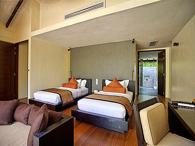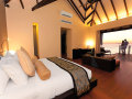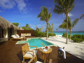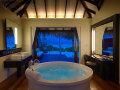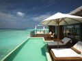 20 Super Deluxe Aqua Villas with Pool (190 кв.м) – стоящие на сваях в водах лагуны виллы, состоящие из фойе с гостиной зоной, спальней с гостиной зоной, просторной ванной комнатой с видом на океан, 2 раковинами, отдельно стоящей ванной и душевой кабиной («ливневый» душ), гардеробной зоной «для него» и «для нее» , тропического душа под открытым небом, открытой террасы с обеденной зоной, диванами для дневного отдыха, лежаками и спуском в воды лагуны, а также персонального пресноводного бассейна. Максимальное размещение: 2 взрослых и 1 ребенок до 12 лет.
