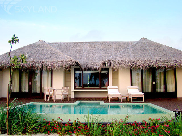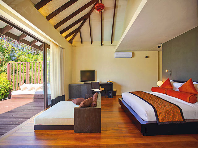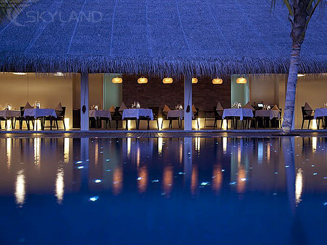 50 элегантных наполненных светом фешенебельных вилл с элегантными современными интерьерами, отделкой из ценных пород дерева и изящными элементами декора в мальдивских традициях, расположившихся вдоль берега, в тени пышной тропической зелени, или на сваях в изумрудных водах лагуны; 5 прекрасных ресторанов и баров, где гости отеля могут насладиться деликатесами кухни, изысканными блюдами, приготовленными из свежих морепродуктов, и разнообразными напитками и винами со всех уголков света; прекрасно оснащенный спа-центр, фитнес-центр, обширный бассейн, теннисные корты, павильон для занятий йогой, центр водного спорта и дайвинг-центр, прогулки под луной, романтические ужины и пикники на пляже, незабываемые морские круизы - вот далеко не полный перечень того, что ждет Вас на этом романтическом острове.