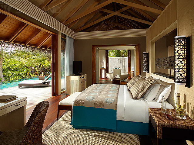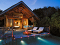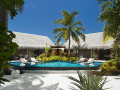 Water Pool Villas – стоящие на сваях в водах лагуны виллы, со спальней, ванной комнатой с ванной, туалетом и душем под открытым небом, гостиной и открытой террасой с солярием, зоной отдыха, спуском в воды лагуны и «бескрайним» бассейном.