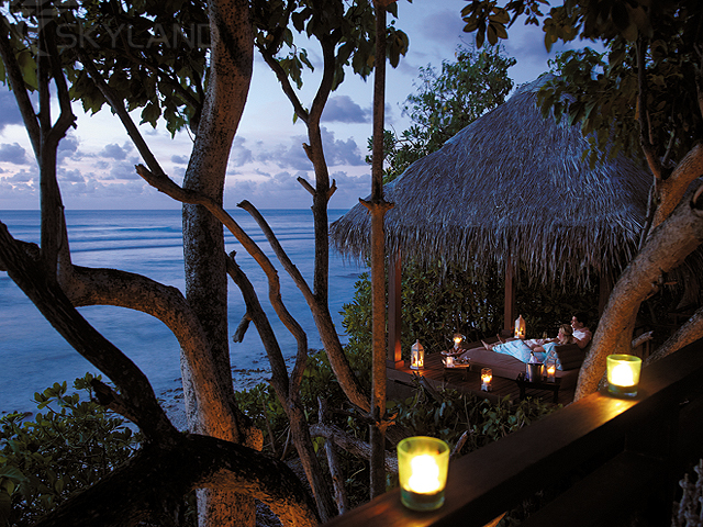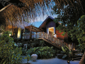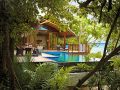 16 Tree House Villas (218 кв.м) – стоящие на сваях в тени тропических деревьев индивидуальные виллы. С расположенных на 3-метровой высоте платформ, на которых расположен «бескрайний» бассейн и жилой павильон со спальней, ванной комнатой, с ванной, туалетом и душем под открытым небом, и гостиной зоной, открывается сказочный вид на остров и окружающие джунгли.