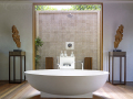1 Presidential Beach Villa - стоящая на пляже вилла с «бескрайним» бассейном, солярием, открытой террасой и расположенными в отдельных павильонах 2 спальнями, оснащенными ванной комнатой с ванной, туалетом и душем под открытым небом, просторной гостиной и столовой.