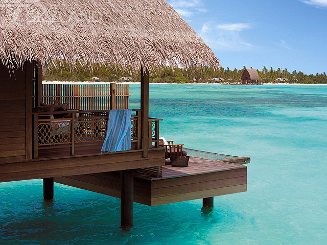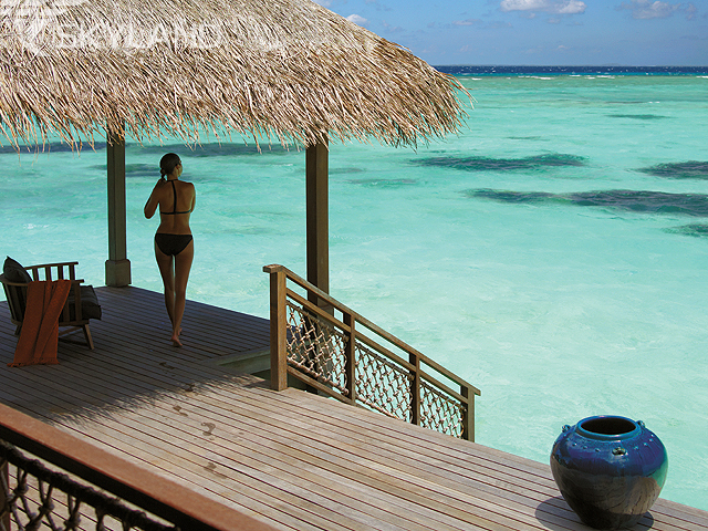 Water Villas – стоящие на сваях в водах лагуны виллы, со спальней и гостиной зоной, ванной комнатой с ванной, туалетом и душем под открытым небом, а также открытой террасой с солярием, зоной отдыха и спуском в воды лагуны.