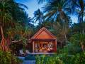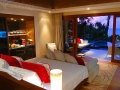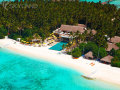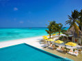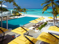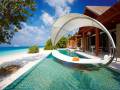 3 Beach Pavilions with Pool (400 кв.м) - расположенные на пляже у вод лагуны роскошные виллы, состоящие из спальни с кроватью king-size, гардеробной и зоной отдыха, ванной комнатой открытого плана с 2 раковинами, туалетом, глубокой ванной, душевой кабиной с функцией «ливневый душ», выходом в мини-садик с рукотворным водоемом и личному «водопаду» (душ под открытым небом) и на террасу-солярий с лежаками; фойе, гостиной со столовой зоной (стол на 4 персоны); просторной открытой террасы с зоной отдыха (столик на двоих, диван-качели и софа для дневного отдыха), оборудованного оптоволоконной подсветкой индивидуального бассейна с джакузи, террасой-солярием и видом на пляж и Индийский океан. Дополнительно на вилле: телевизор «Плазма», домашний кинотеатр, iPod, бесплатно попкорн и мороженое.