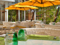 мини-садик с рукотворным водоемом и личному «водопаду» (душ под открытым небом); просторная терраса с зоной отдыха (столик на двоих, диван-качели и лежаки);