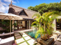 Крытые тростником частные виллы образовали целый комплекс с бассейном и просторной террасой с лежаками. На вилле: одна или две просторные спальни с видом на сад, кроватью размером king-size, оттоманкой, рабочим столом и зоной отдыха; одна или две мраморные ванные комнаты с большой овальной ванной, душевой кабиной и отдельным туалетом; гостиная. У бассейна расположен павильон-газебо со столовой зоной на четыре персоны. В частном саду каждой виллы есть душ под открытым небом.