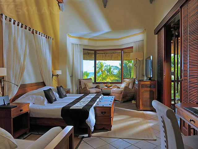 20 Club Junior Suites Beach Front (65 кв.м) – в номере имеется: спальня и небольшая гостиная зона. Расположены Club Junior Suites Beach Front на 1 и 2 этажах коттеджей. Клубные номера имеют панорамный вид на океан и находятся на пляже. Дополнительно в номерах: кофе-машина Nespresso и станции для iPod. Гости номеров пользуются услугами Club at Dinarobin. Максимальное размещение: 2 взрослых + 1 ребенок.