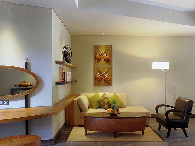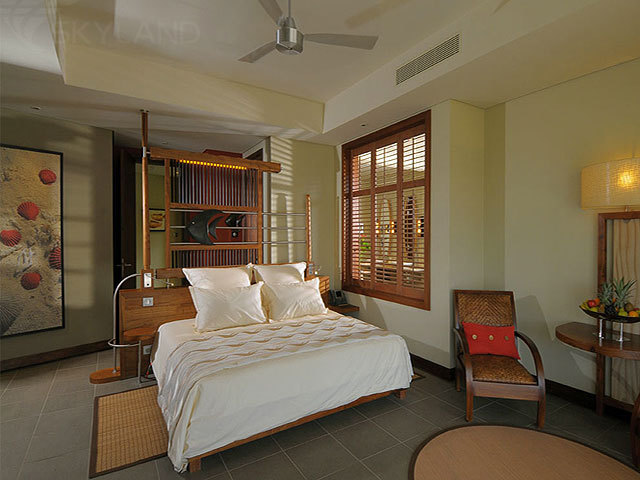 В декоре светлых комфортабельных, обставленных прекрасной мебелью номеров отеля использованы элементы традиционного маврикийского и колониального стилей, теплые цвета пастельных тонов. С просторных террас открывается чудесный вид на океан и тропические сады.